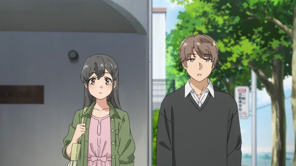 咲太と別れて、麻衣と紗良が歩いていくシーン。