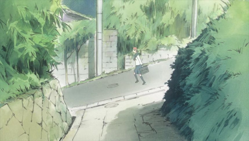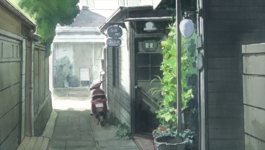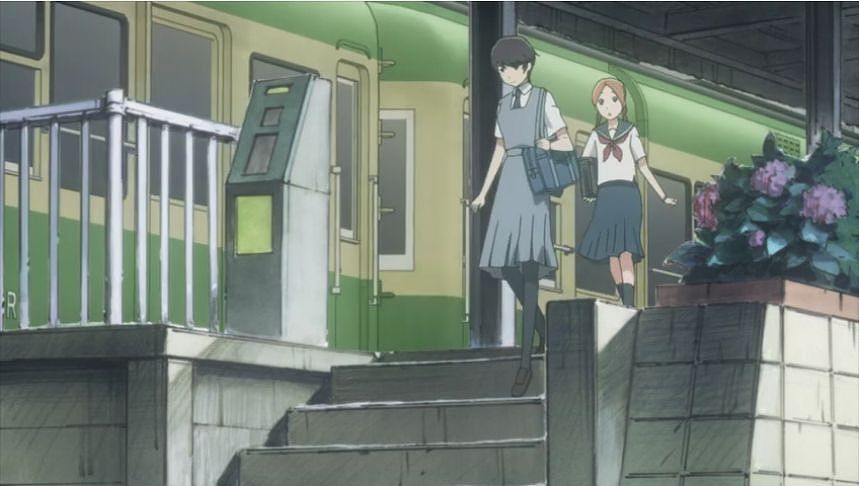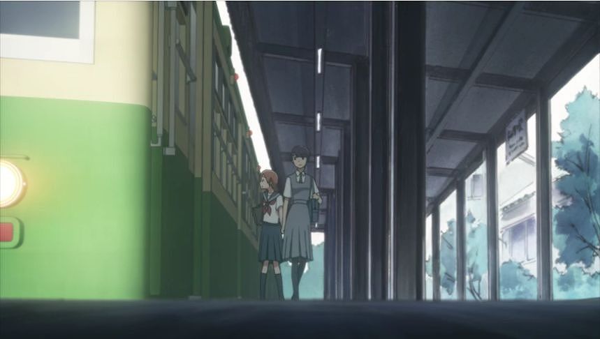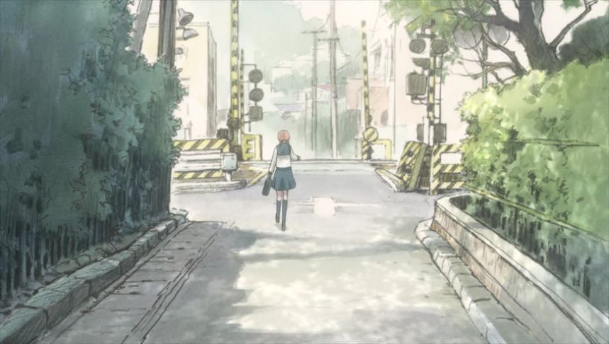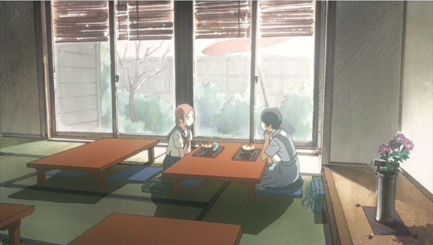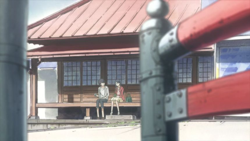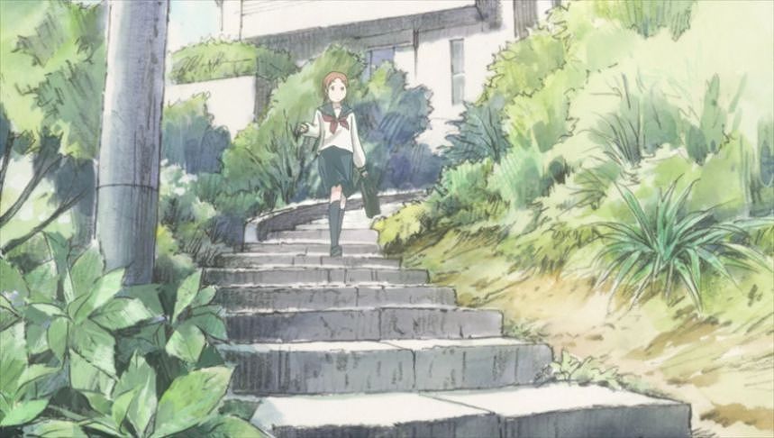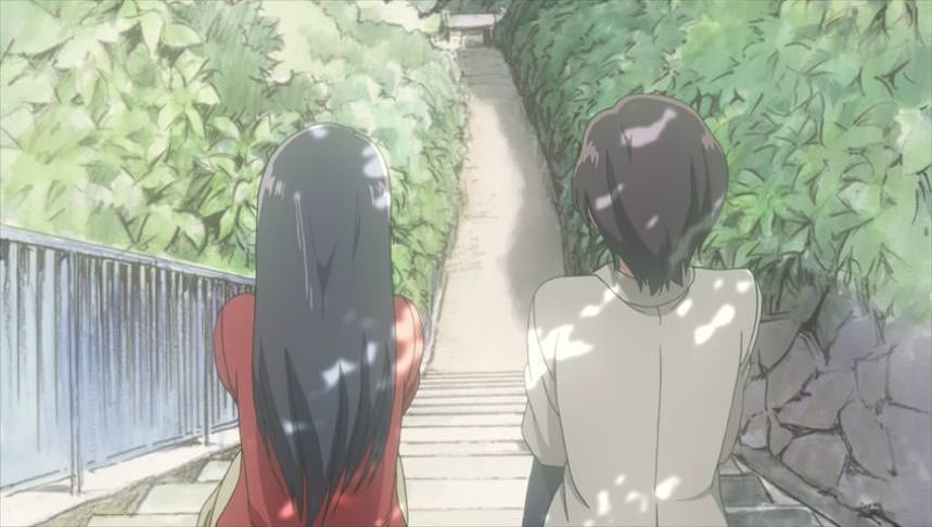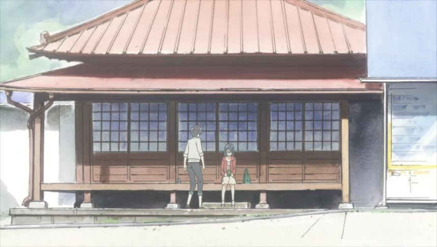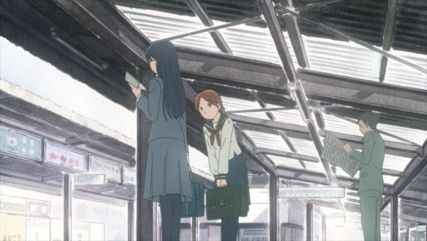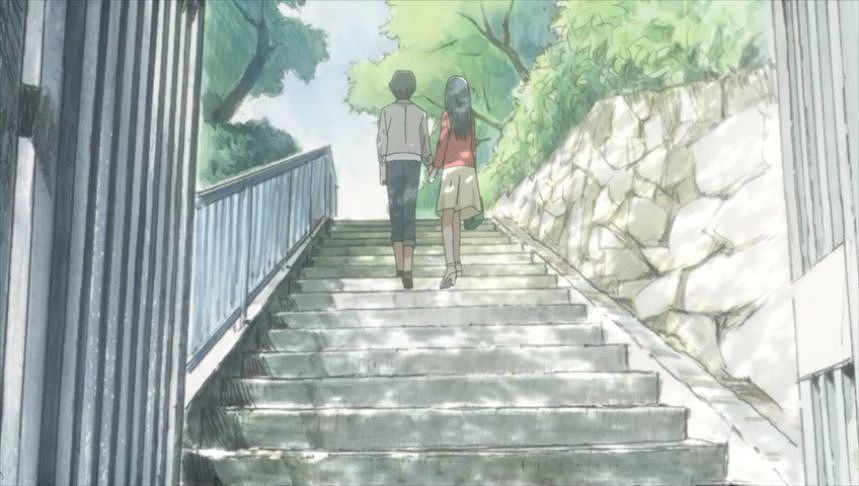 あーちゃんと先輩が学校をサボって無心庵へ向かうシーン。