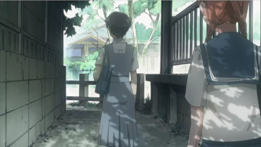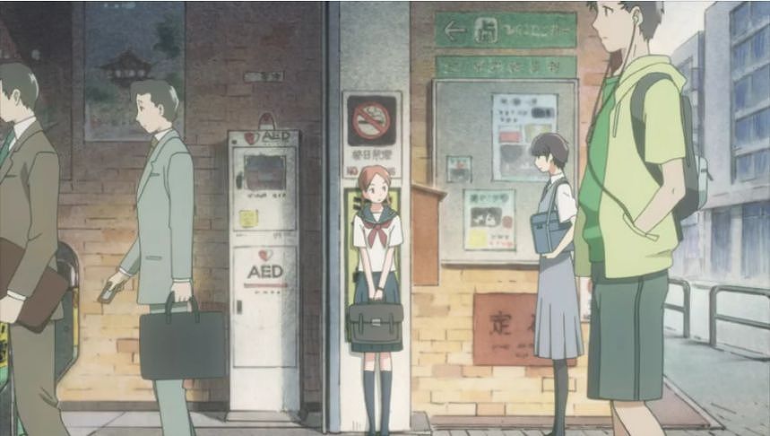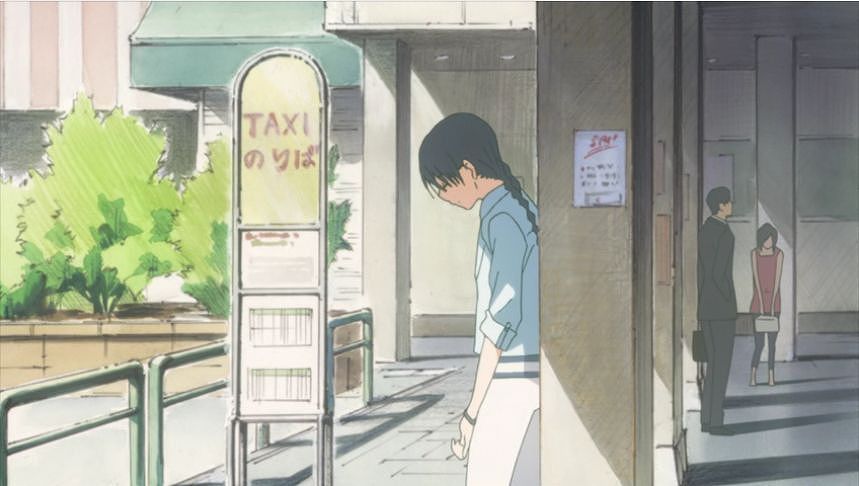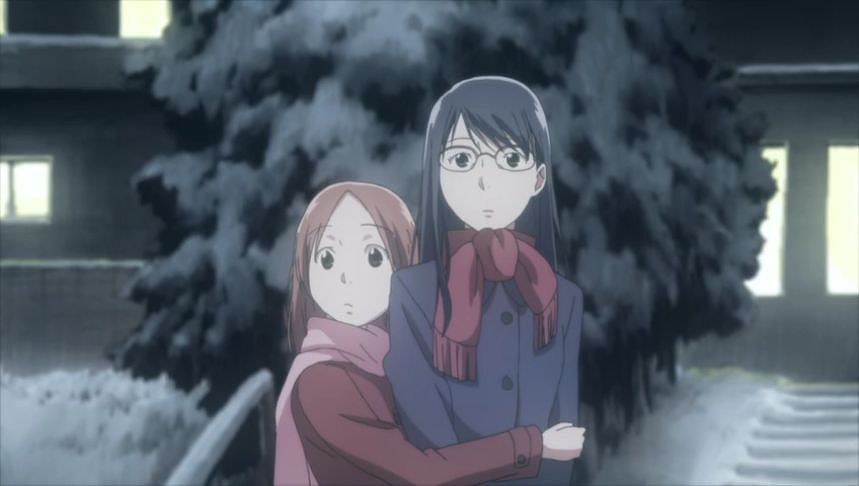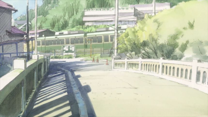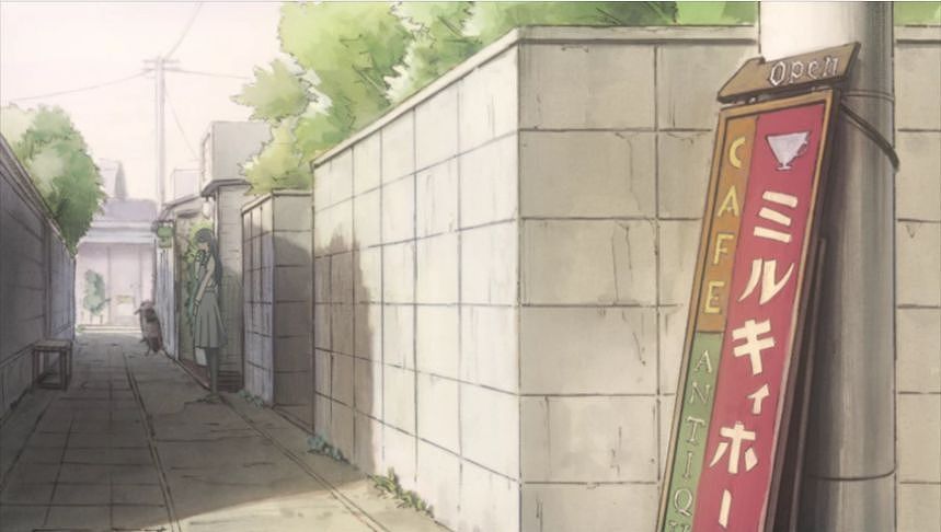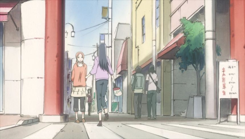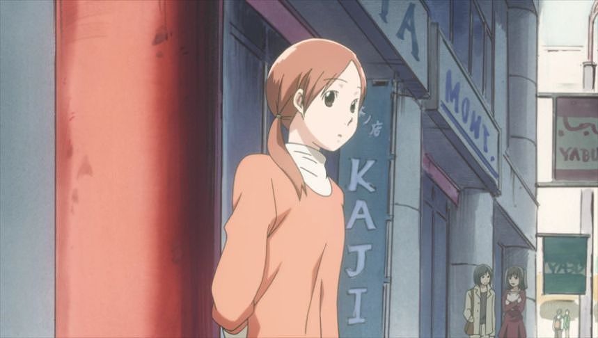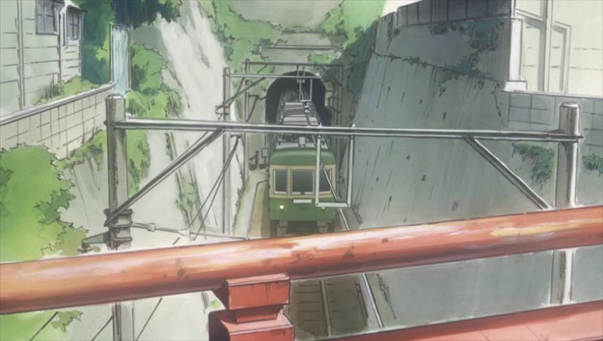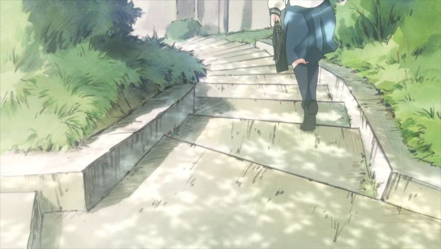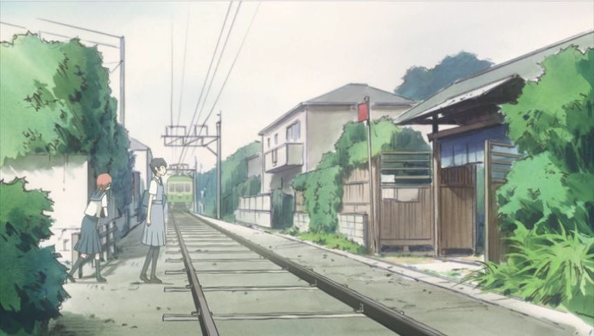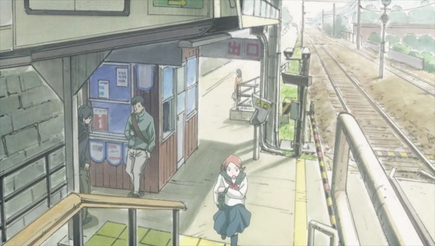 あーちゃんと先輩が学校をサボって無心庵へ向かうシーン。