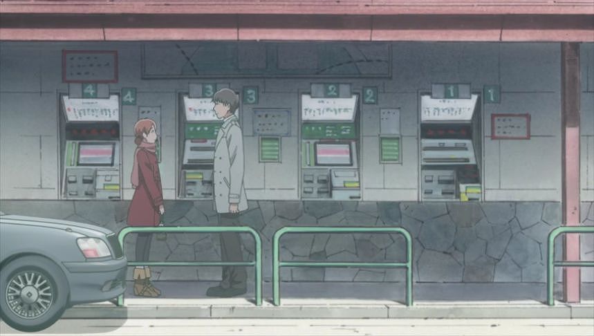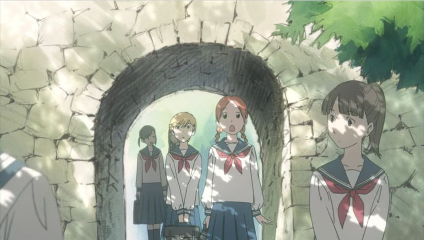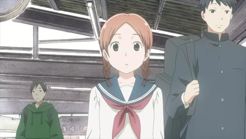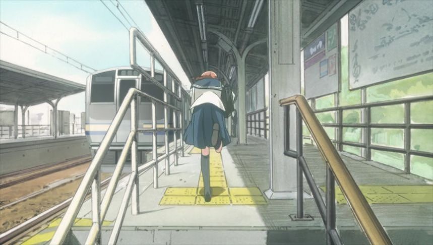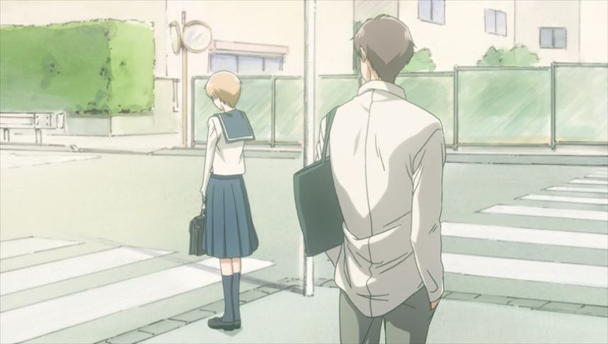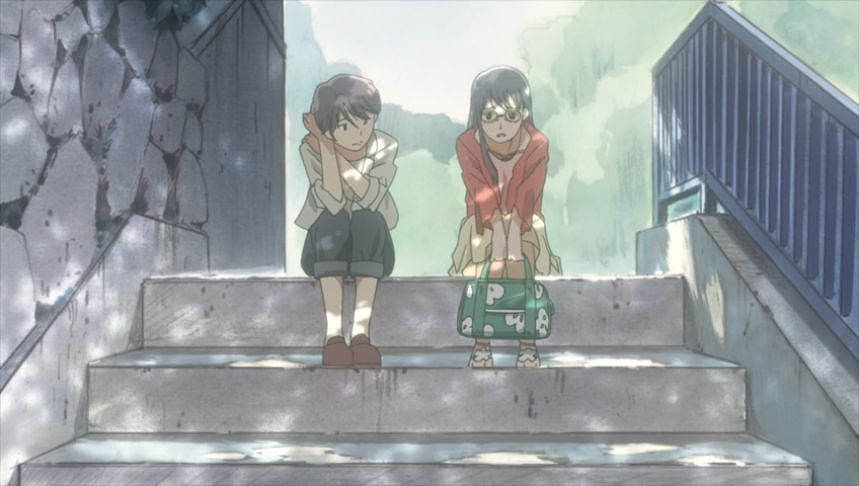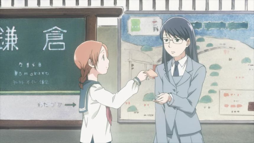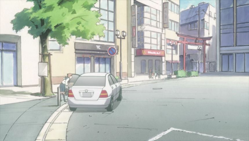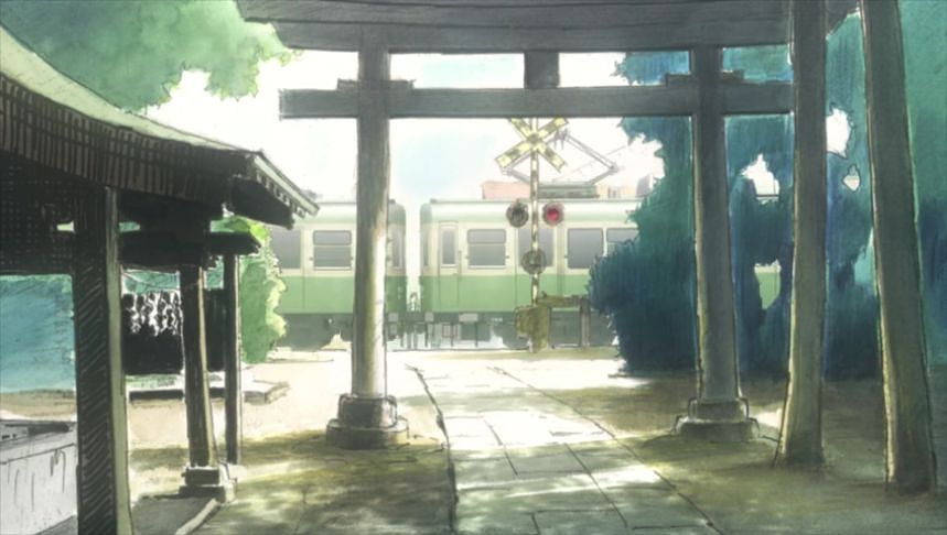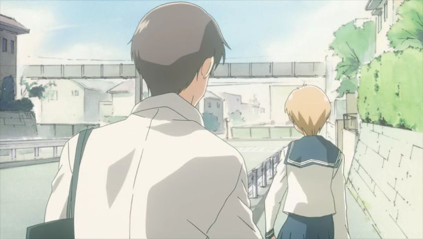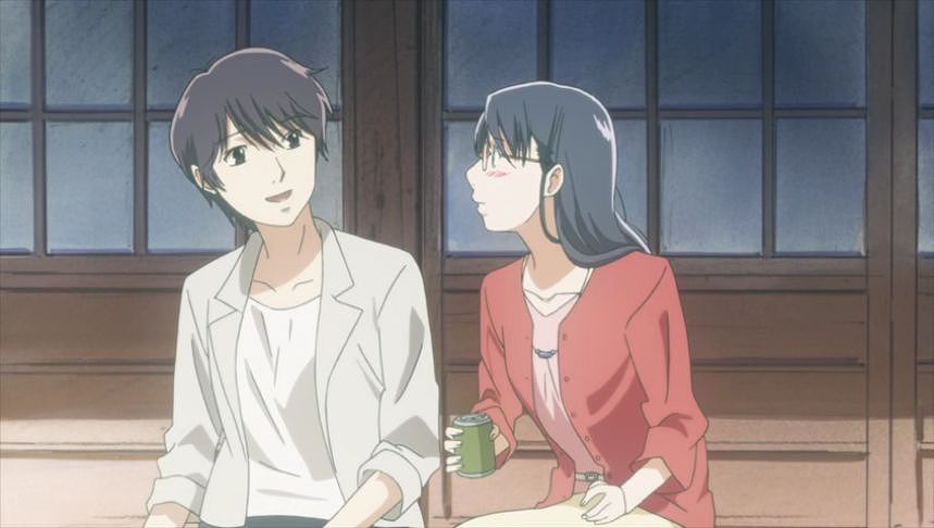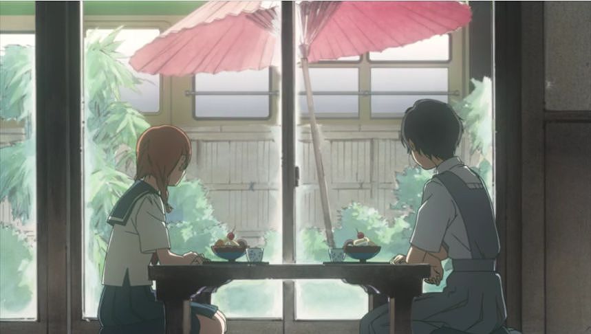 あーちゃんと先輩が学校をサボって無心庵へ向かうシーン。