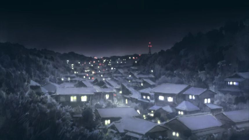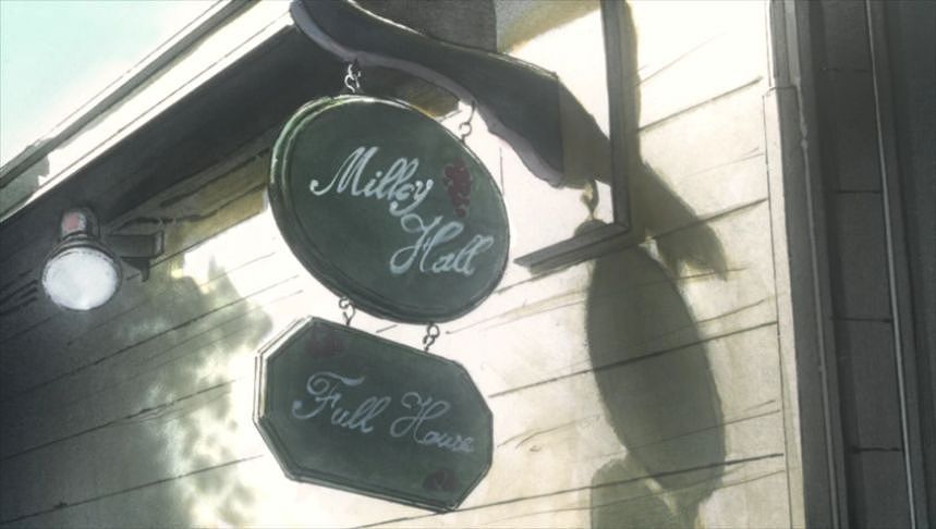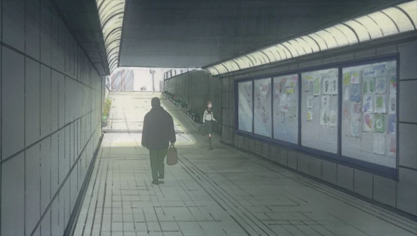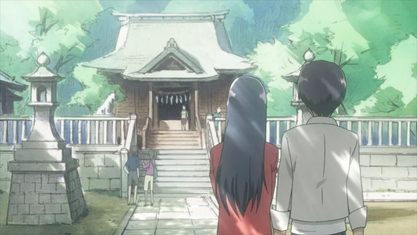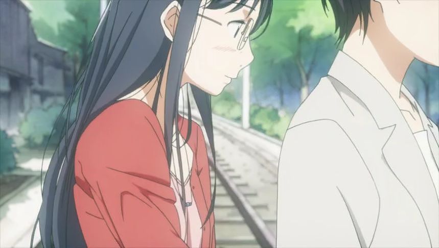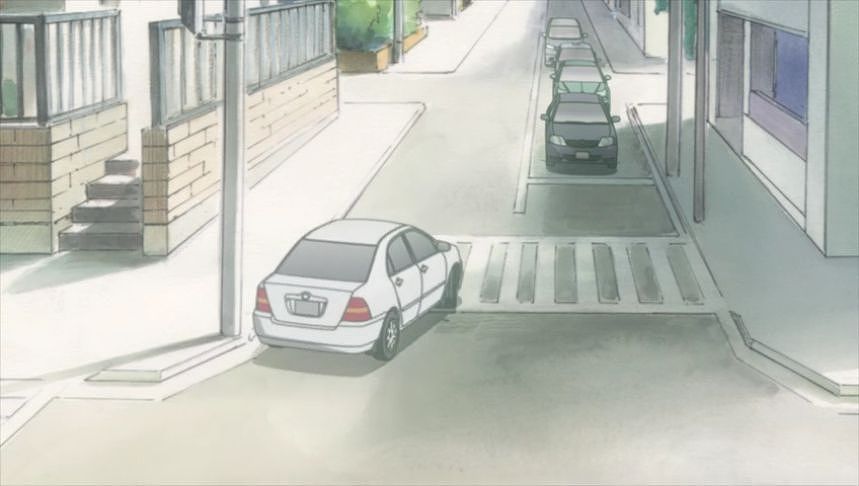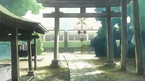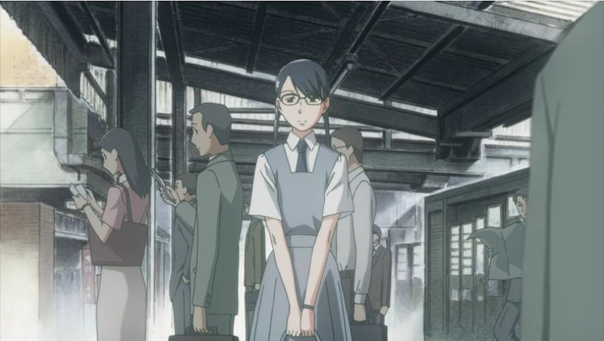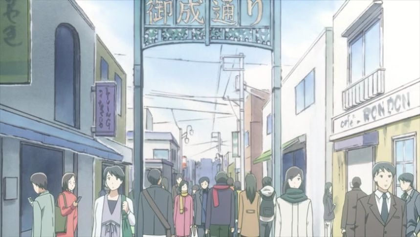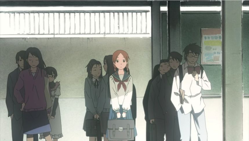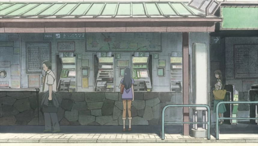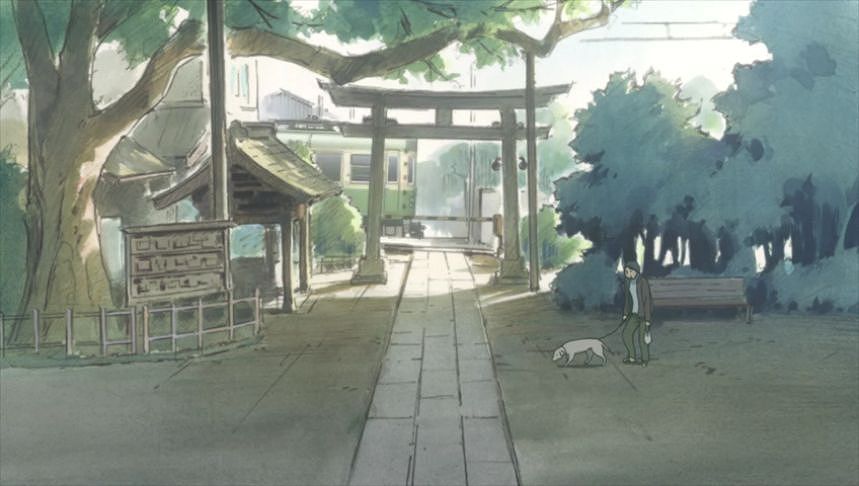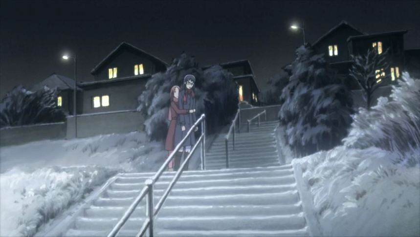 あーちゃんと先輩が学校をサボって無心庵へ向かうシーン。