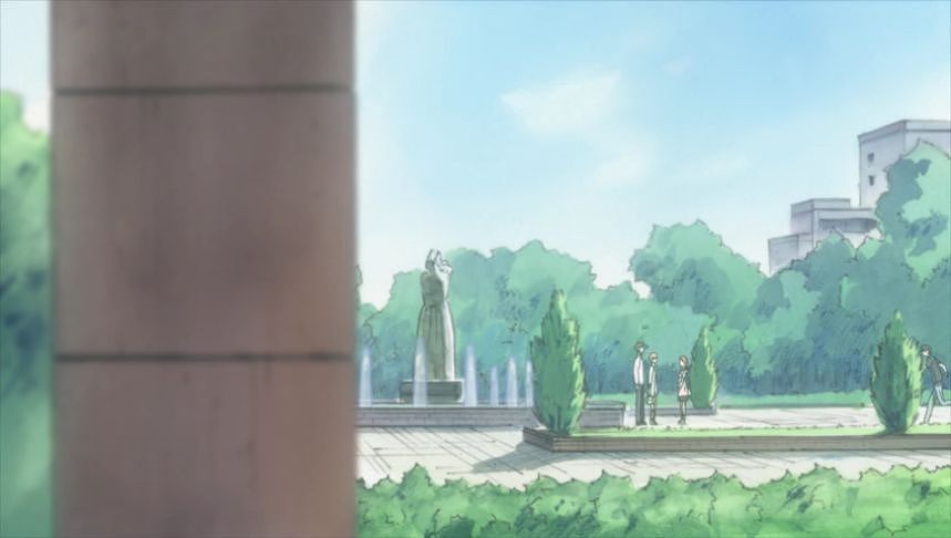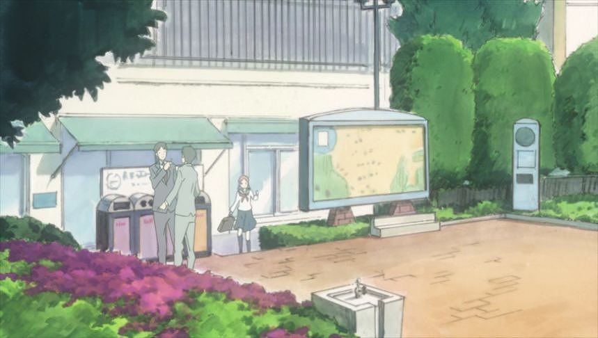 1話の通学シーンで、あーちゃんが走っていった広場ですね。