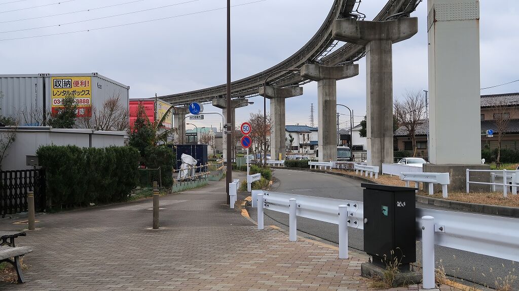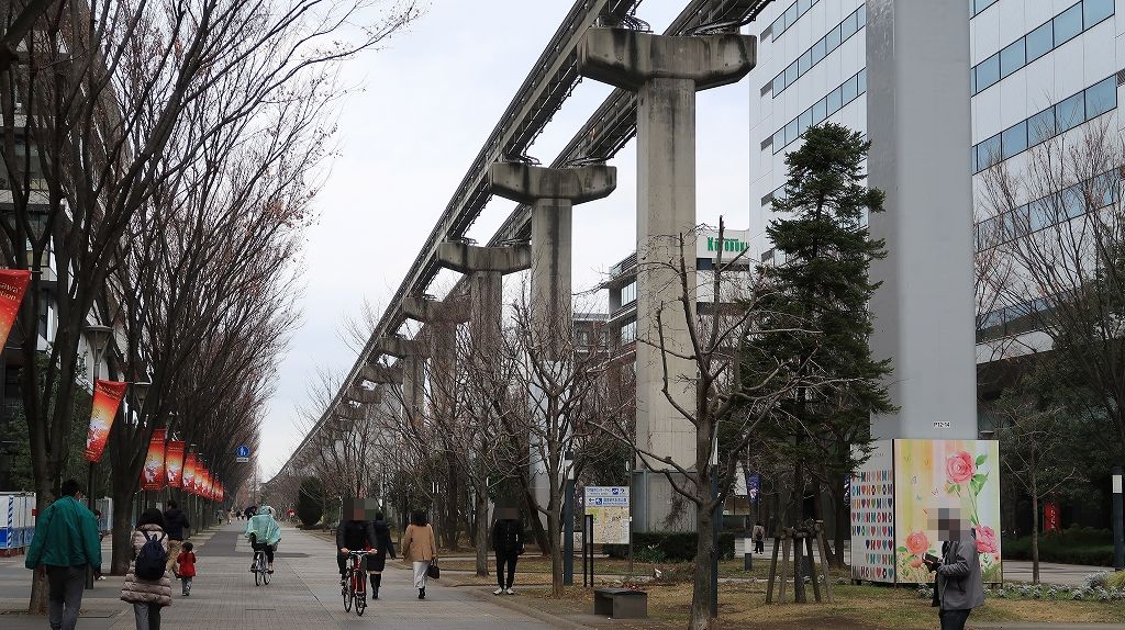 歩道橋の上からモノレール側を撮影。