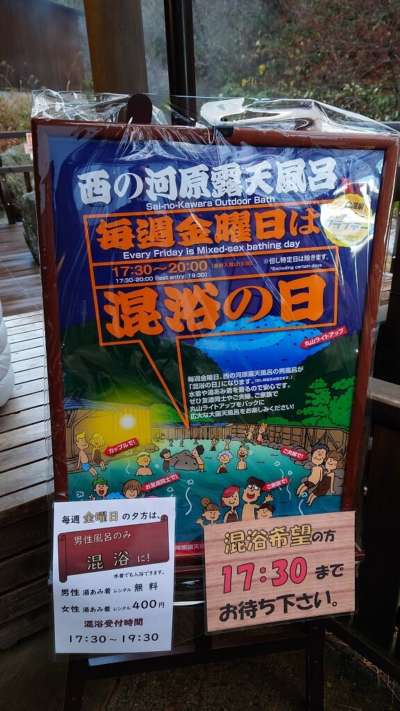 これは西の河原露天風呂で撮ったものですが、本当に混浴をやっています。