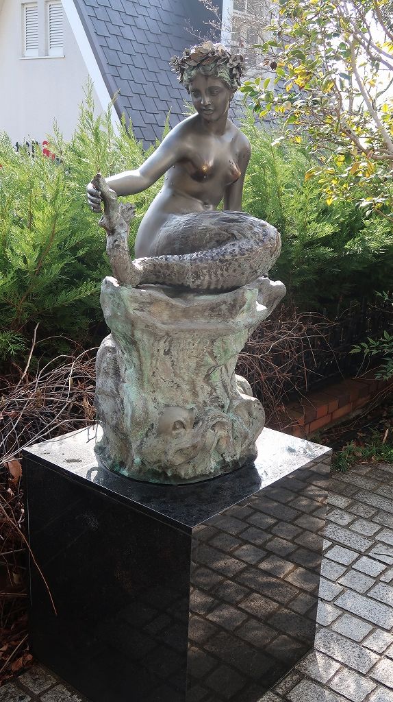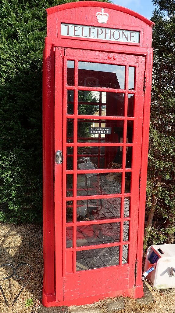 イギリスで実際に使われていた電話ボックス。なんか敷地内には他にも像が。